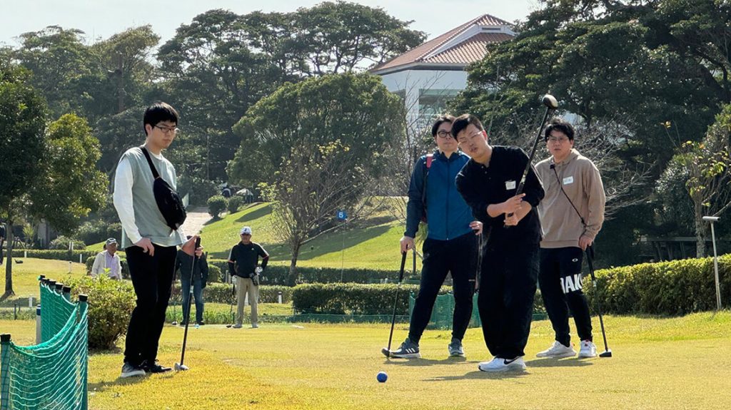 それぞれチームに分かれ、スコアを競い合いました。パークゴルフで爽やかな汗を流した後は、お昼にお弁当を食べて親睦を深めました。