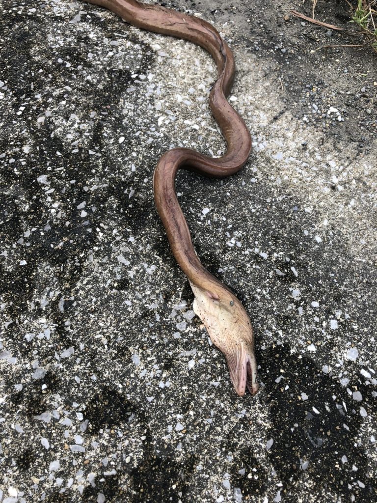 宮崎で最初に釣れた生き物:ヘビ?ハモ?