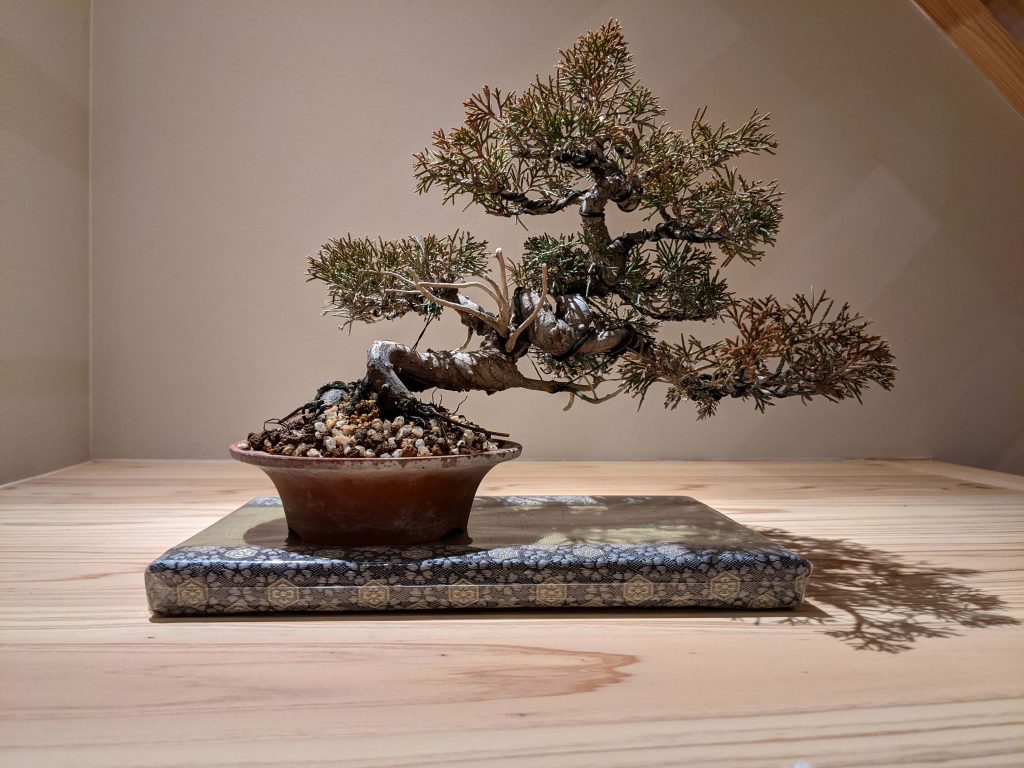 盆栽の面白さについてですが、剪定などの季節ごとの作業を行うと、仕事のことを忘れて集中でき、心が整うところです。