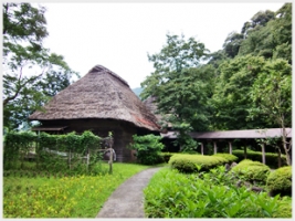 会議室から茅葺屋根の「式部屋敷」に場所を移動し宴会のスタートです。
