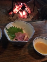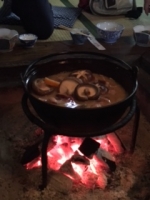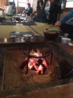 囲炉裏を囲んで、鯉のあらい・鮎の塩焼き・しし鍋といった綾町特産のおいしい料理に舌鼓を打ちながら、お酒も心ゆくまで堪能しました。