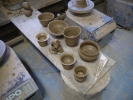 ロクロ班の2人は、「ぐい呑み」と「お抹茶椀」。出来栄えは・・・(-_-)。