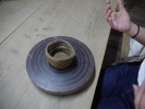 もう一方のロクロ班。ズボンを土まみれにしながらも、アタフタしながらも、唯一の物が出来るまで頑張ってました。