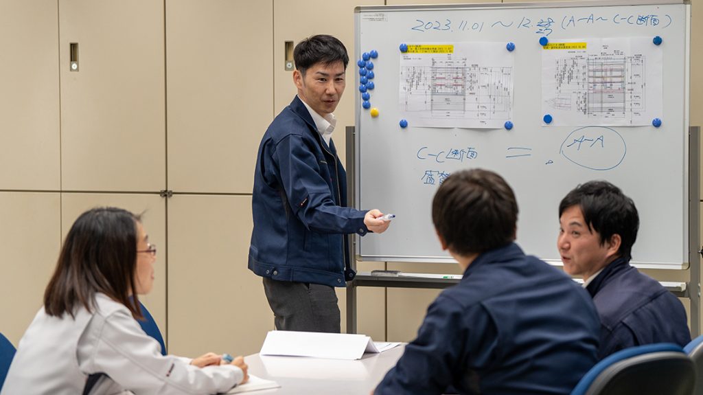 一つの現場には弊社の設計業務以外にも多様な仕事があり、様々な会社・人と協力して作り上げていくため、仕事の前後関係を理解することが大切になります。