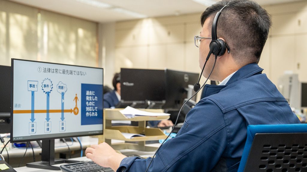 オンライン研修会社と契約しており、自分の仕事の合間で研修を受ける事が出来ます。テキストのみならず、動画形式で分かりやすく内容がまとめられたコンテンツを視聴して、社員のスキルアップを目指します。