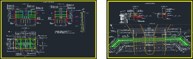 国土交通省CAD製図基準・同解説に準じて仮設構造物の設計図面(一般図・部材取付詳細図)を作成しております。