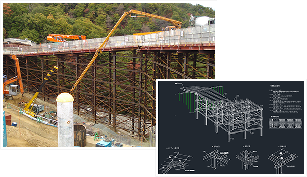仮設構造設計とは、建造物本体を構築する上で必要な仮設構造物の設計であり、「安全性」「施工性」「経済性」など考慮する必要があります。