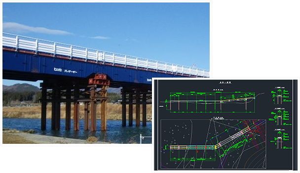 仮設構造設計では、仮設資材(鋼材)を利用した山留や桟橋の設計を、設計計算から、図面・数量まで一貫して対応しております。